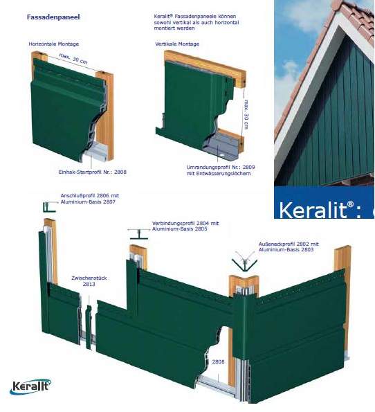 Fassadenelemente Keralit - für waagerechte ,diagonale und senkrechte Verlegung geeignet